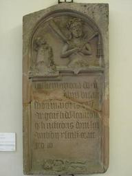 | Keywords: Epitaphe de Joseph Nussbaum.jpg en Epitaph of Joseph Nussbaum Colmar France Upper Rhine in 1500 Sandstone from the commander of the Antonines of Isenheim Acquired by the museum of Unterlinden in 1920 The text is This was done in memory Sir Nicolas Nussbaum vicar of the choir of the cathedral of Strasbourg faithful servant and benefactor of the house of Saint-Antoine Isenheim Pray for him fr Epitaphe de Joseph Nussbaum Colmar Rhin supérieur vers 1500 Grès provenant de la commanderie des Antonins d'Issenheim Acquis par le musée d'Unterlinden vers 1920 Le texte est Ceci fut fait en mémoire de sire Nicolas Nussbaum vicaire du choeur de la cathédrale de Strasbourg fidèle serviteur et bienfaiteur de la maison de Saint-Antoine d'Issenheim Priez pour lui own Tangopaso ~ 1500 48 4 46 34 N 7 21 20 47 E region FR_heading ESE Hospital Brothers of St Anthony Sculptures in the Musée d'Unterlinden 15th-century inscriptions Epitaphs in Alsace Colmar Musée Reliefs in Colmar Sandstone reliefs in Haut-Rhin Gothic reliefs in Alsace Colmar Musée Gravestones in Haut-Rhin Colmar Musée Reliefs of Jesus in France Sculptures of the Ecce Homo in France 16th-century sandstone reliefs in Alsace Colmar |