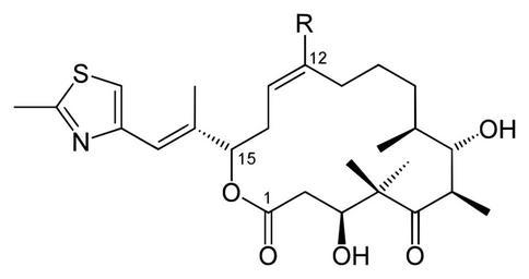 Keywords: Epothilone C D.svg Strukturen von Epothilon C R H bzw D R CH3 de structures of epothilone C R H bzw D R CH3 en Own 2008-05-19 Yikrazuul Epothilones