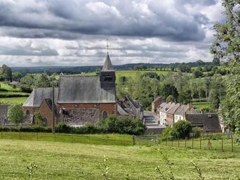 Keywords: eppe-sauvage france landscape scenic summer trees church architecture sky clouds field rural countryside hdr