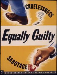 | Keywords: Equally guilty. Carelessness. Sabotage - NARA - 535250.jpg Scope and content General notes 535250 Local identifier 179-WP-1400 Office for Emergency Management War Production Board 01/1942 - 11/03/1945 Still Picture Records Section Special Media Archives Services Division NWCS-S National Archives at College Park 8601 Adelphi Road College Park MD 20740-6001 other date circa 1942 1943 Record group Record Group 179 Records of the War Production Board 1918 - 1947 Record group ARC 508 War Production Board compiled 1942 - 1943 Series ARC 533858 File unit File unit ARC Variant control numbers NAIL Control Number NWDNS-179-WP-1400 Other versions <gallery> File Equally_guilty _Carelessness _Sabotage_-_NARA_-_535250 tif tif File Equally_guilty _Carelessness _Sabotage_-_NARA_-_535250 jpg jpg </gallery> NARA-cooperation PD-USGov World War II posters from the United States Sabotage |