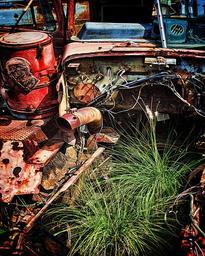 Keywords: equipment yellow used boneyard junk rust construction junkyard truck heating wiring red grass