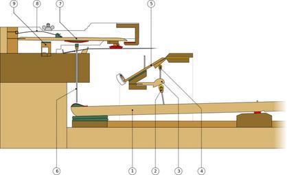 | Keywords: Erard double pilot action.svg Mécanisme à pilote mécanisme des premiers pianos à trois cordes fabriqués vers 1790 par les frères Erard traced colorized and reoriented for right hand view by Mireut from plate III - Perfectionnemens apportés dans le mécanisme du piano par les Erard depuis l'origine de cet instrument jusqu'à l'exposition de 1834 Pierre Erard Paris 1834 http //www musiques-vivantes com/index php option com_content task view id 57 Itemid 32 1834 Pierre Erard key 1 <br />jack 2 <br />false hammer or intermediate lever underhammer 3 <br />second jack 4 <br />hammer 5 <br />damper stick lift rod 6 <br />damper 7 <br />damper spring 8 <br />portion of the mechanism for raising the damper 9 1 鍵 2 ジャック 3 フォルス・ハンマー(中間レバー) 4 セカンド・ジャック 5 ハンマー 6 ンパー・スティック(リフト・ロッド) 7 ンパー 8 ンパー・スプリング 9 ンパーを持ち上げる機構 PD-old Musical instruments schemes Musical instruments technical diagrams Piano action Diagrams labelled with numbers only SVG music Sébastien Érard Pianos by Érard |