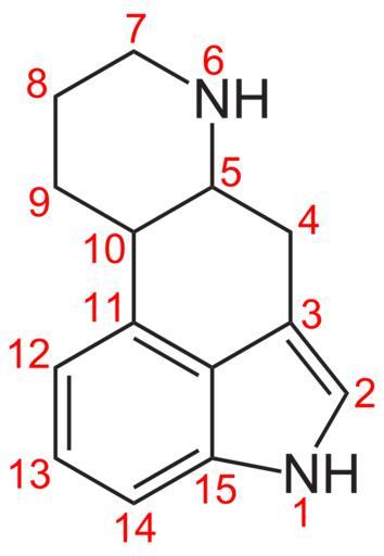 | Keywords: Ergolin num.svg Struktur von Ergolin nummeriert Structure of ergoline numbered own 2007-04-07 NEUROtiker Own work all rights released Public domain de einfach nummeriert nummeriert und Ringe beschriftet<br />en plain numbered numbered and rings labelled Ergoline |