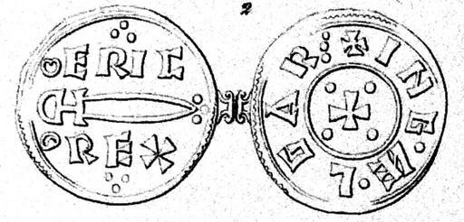 | Keywords: Eric I 2.png Münze Eric Blutaxt um 950 König von Northumberland Text Adv ERIC REX; Rev INGÆLGAR ø 1 3 gr ø ca 880 ° Feingehalt C I Schive Norges Mynter i Middelalderen Christiania 1865 1865 Zeichner C I Schive Lithograf Bucher in Bergen PD-old Penny Coins of the 10th century Silver coins Countermarked coins Coins of England Fingalo No |