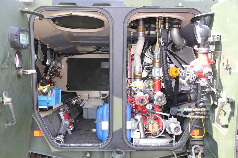| Keywords: Erikoissammutusyksikkö SM 15 5.JPG en Erikoissammutusyksikkö SM 15 special fire engine used by Finnish military Specially designed for combating fires in ammunition dumps or other explosive areas built on Pasi armoured personnel carrier Equipped with 8 5 meter long grip arm capacity 100 kg with a camera 12x zoom both day/night use halogen light and Rosenbauer RM8E water cannon Self-protection water cannon Rosenbauer RM8E 1000 l/min/10 bar with a range of 42 meters and 270 degree traverse Impulse Fire Extinguishing System IFEX with 2 x 12 l/25 bar range 60 meters initial velocity 120 m/s Inside the vehicle is a hydraulic water pump Esteri D-16/19 1600 l/min/10 bar 1500 l water tank remote operating system and the controls for pump water cannons and the grip arm Attached to Finnish Navy Archipelago Sea Naval Command military fire department fi Suomen puolustusvoimien käytössä oleva erikoissammutusyksikkö SM 15 Pasi-miehistönkuljetusajoneuvon rakenteelle tehty erityisesti ammusvarikkojen ja muiden räjähtävien kohteiden sammutukseen suunniteltu sammutusajoneuvo Autossa on 8 5 metrin pituinen nostokouralla 100 kg kameralla 12x zoom sekä yö- että päiväkäyttö halogeenivalolla ja Rosenbauer RM8E vesitykillä varustettu käsivarsi Omasuoja-vesitykkinä on Rosenbauer RM8E 1000 l/min/10 bar kantama 42 metriä kääntösäde 270 astetta IFEX-mikroimpulssisammutin 2 x 12 l/25 bar kantama 60 metriä lähtönopeus 120 m/s Vaunun sisällä on hydraulinen palopumppu Esteri D-16/19 1600 l/min/10 bar 1500 litran vesisäiliö kaukokäyttöyksikkö sekä palopumpun vesitykkien käsivarren ja nostokouran ohjaus Vaunu kuuluu Saaristomeren meripuolustusalueen sotilaspalokuntaan own MKFI 2011-07-09 Finnish Navy anniversary 2011 Erikoissammutusyksikkö SISU/Patria XA-series in Finnish service Taken with Canon EOS 60D Taken with Canon EF-S 15-85mm F3 5-5 6 IS USM Files by User MKFI SISU/Patria XA-series interiors |