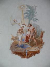 | Keywords: Ermengerst Kirche Deckenbild.jpg Filialkirche St Johannes der Täufer Ermengerst Ortsteil von Wiggensbach Jakob Huwyler Deckengemälde Taufe Christi 1903 own own photograph 2007-09 Photo Andreas Praefcke Filialkirche St Johannes der Täufer Ermengerst Paintings of the baptism of Jesus Christ Photos by User AndreasPraefcke |