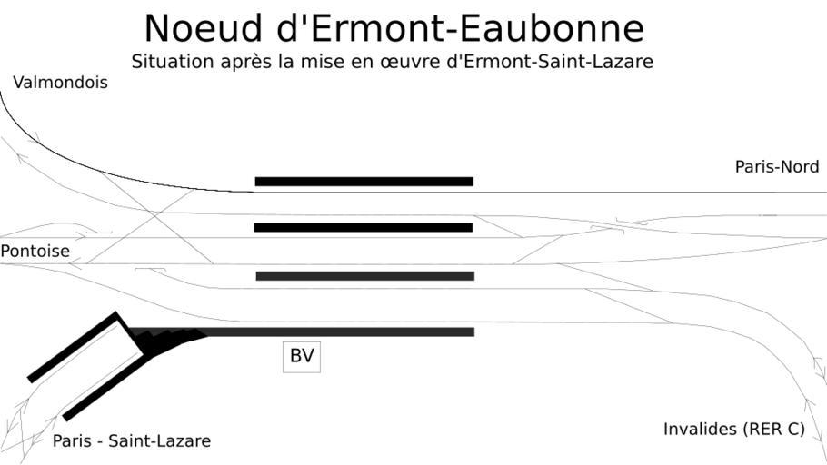 | Keywords: Ermont-Eaubonne station 2009.svg English Map of Ermont-Eaubonne train station Val d'Oise France as it will be after the end of the Ermont-Saint-Lazare project supposed to be in 2009 <br />Français Plan de voies de la gare d'Ermont-Eaubonne Val d'Oise France après la fin du projet Ermont-Saint-Lazare <br />Source http //www metro-pole net/actu/IMG/jpg/Ermont_2008 jpg Metro-Pole 2004 Own date Benjism89 Gare d'Ermont - Eaubonne Rail track diagrams of train stations in France Ermont-Eaubonne |