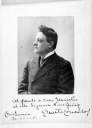 | Keywords: edvard grieg edvardgrieg vintage black and white blackandwhite historic norway consolo blackandwhite monochrome people black and white Artist: unknown Date/place: 31.10. 1905, Christiania (Oslo) Subject: Erner Tolourolof [?] Medium: photographic positive, B&W Notes: Greeting written in italian to Edvard and Nina Grieg under the photo. Persistent URL: Original belongs to the Edvard Grieg Archives at Bergen Public Library Original reference: EGM0070 Artist: unknown Date/place: 31.10. 1905, Christiania (Oslo) Subject: Erner Tolourolof [?] Medium: photographic positive, B&W Notes: Greeting written in italian to Edvard and Nina Grieg under the photo. Persistent URL: Original belongs to the Edvard Grieg Archives at Bergen Public Library Original reference: EGM0070 |