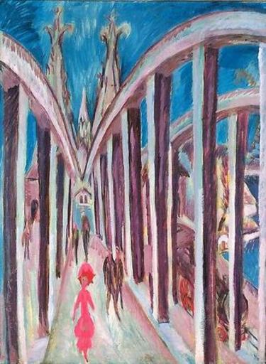 | Keywords: Ernst Ludwig Kirchner, Rheinbrücke in Köln, 1914.jpg Artwork Creator Ernst Ludwig Kirchner en Bridge over the Rhine in Cologne 1914 Oil canvas cm 120 5 91 Institution Neue Nationalgalerie accession number object history credit line repro from art book Author died more than 70 years ago - public domain thumb none PD-old-auto 1938 Landscape paintings by Ernst Ludwig Kirchner Hohenzollernbrücke Cologne in art Cologne Cathedral in art Paintings in the Neue Nationalgalerie 1914 paintings Rail transport in art Bridges in art Umbrellas in art |