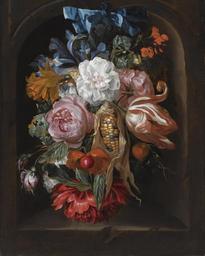 | Keywords: Ernst Stuven - Tulpe, Iris, andere Blumen und ein Maiskolben in eine Niesche.jpg Artwork Creator Ernst Stuven oil canvas cm 44 8 36 object history With Richard Green London 1992 as by J Rotius ;<br/>With Johnny van Haeften London 1992/3;<br/>Private collection Leeuwarden;<br/>With Johnny van Haeften London by 2005 credit line accession number http //www sothebys com/de/auctions/ecatalogue/2008/old-master-paintings-am1057/lot 42 html Sotheby's Amsterdam 2008 11 11 lot 42 PD-old-100 Ernst Stuven Still life paintings of flowers 18th-century still life paintings Images from Sotheby's |