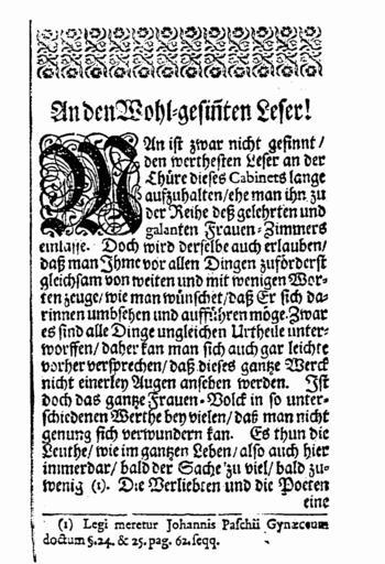 Keywords: Eröffnetes Cabinet Deß Belehrten Frauen-Zimmers p 011.jpg p_010 p_012