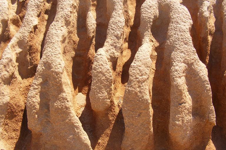 Keywords: erosion sand stone water grooves weathered ridge washed out hot dry ochre colours