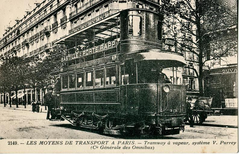 | Keywords: ES 2149 - LES MOYENS DE TRANSPORT A PARIS - Tramway à vapeur, système V. Purrey (CGO).jpg fr Carte postale ancienne éditée par ES collection Les moyens de transport à Paris N°2149<br >Tramway à vapeur système V Purrey w fr Compagnie générale des omnibus Collection personnelle Scanné par Claude Shoshany Début du XXe siècle pd-old Historical trams in Paris Steam-powered trams Purrey Compagnie générale des omnibus Postcards of Paris Paris in the 1900s Tram transport in the 1900s Black and white photographs of trams in France |