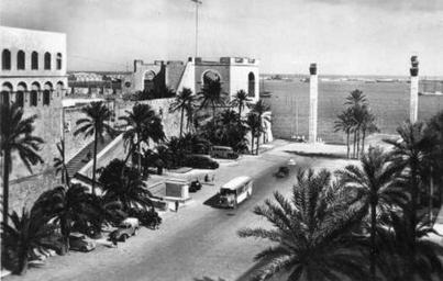 | Keywords: E'saha ElKhadra,Tripoli.jpg A circa 1945-1955 image of Italian colonial Piazza Italia 1930s-1950s - on the harbour in downtown Tripoli in the Italian Libya era The present day Martyrs' Square or Maidan Al Shohdaa in independent Libya Also formerly named Independence Square 1950s-1960s and Green Square or E'saha ElKhadra 1970s-mid 2011 The Ottoman era Red Castle Tripoli Castle museum is on the left View is to the northwest with the Tripoli Bay just behind the two monument columns before 1960s landfills extended land far into harbour beyond http //www alhandasa net/forum/showthread php t 57219 alhandasa net 1945-1955 not mentioned PD-Libya Green Square Tripoli 01 Tripoli Castle History of Tripoli Italian occupation of Libya Streets in Tripoli Arecaceae in Libya checked en Martyrs' Square Tripoli |