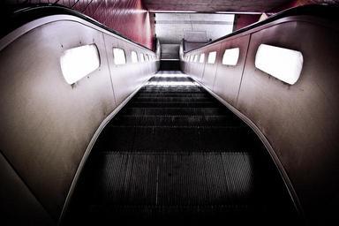 Keywords: escalator metro climbing aid movement technology underground handrails exit down light lighting urban nuremberg