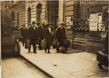 | Keywords: irish civil war irishcivilwar battle of dublin battleofdublin edinburgh hotel edinburghhotel guests luggage sackville street sackvillestreet o'connell street oconnellstreet dublin ireland leinster july 1922 1920s twenties 1043 ck 1043ck arr 3 arr3 armoured rolls royce 3 armouredrollsroyce3 the fighting 2nd thefighting2nd fighting 2nd fighting2nd oxter w.d. hogan wdhogan hogan collection hogancollection 5th wednesday national library of ireland nationallibraryofireland monochrome At the start of the Irish Civil War in 1922, the Battle of Dublin took place from 28 June to 5 July. This photo shows guests finally making their escape from the The Edinburgh Hotel at 56 Upper Sackville Street, now O'Connell Street. The Edinburgh Hotel was a temperance hotel, meaning that the beleaguered guests couldn't even resort to alcohol during their confinement! The following report is taken from the Irish Times on Thursday, 6 July 1922: "The Edinburgh Hotel, on the west side of Sackville street [now O'Connell Street], occupied a precarious position during the operations in that thoroughfare. Nevertheless, throughout the week about a dozen guests, with the staff, numbering as many more, remained in the building. Yesterday afternoon, when the hotel took fire, they were at last obliged to leave after they had been warned by the firemen of their danger. The small party, carrying various items of luggage, appeared at the front door, and, under a white flag, turned down towards the Nelson Pillar. They were at once turned into Henry street, where they were less exposed to fire, and when the troops were satisfied as to their bona fides, they were directed to go along towards Mary street, where they were held up. A newspaper representative who happened to be near took charge of the party, and explained their plight to the soldiers, who allowed them to pass through. They ultimately made their way to other hotels." Date: Wednesday, 5 July 1922 NLI Ref.: HOGW 27 At the start of the Irish Civil War in 1922, the Battle of Dublin took place from 28 June to 5 July. This photo shows guests finally making their escape from the The Edinburgh Hotel at 56 Upper Sackville Street, now O'Connell Street. The Edinburgh Hotel was a temperance hotel, meaning that the beleaguered guests couldn't even resort to alcohol during their confinement! The following report is taken from the Irish Times on Thursday, 6 July 1922: "The Edinburgh Hotel, on the west side of Sackville street [now O'Connell Street], occupied a precarious position during the operations in that thoroughfare. Nevertheless, throughout the week about a dozen guests, with the staff, numbering as many more, remained in the building. Yesterday afternoon, when the hotel took fire, they were at last obliged to leave after they had been warned by the firemen of their danger. The small party, carrying various items of luggage, appeared at the front door, and, under a white flag, turned down towards the Nelson Pillar. They were at once turned into Henry street, where they were less exposed to fire, and when the troops were satisfied as to their bona fides, they were directed to go along towards Mary street, where they were held up. A newspaper representative who happened to be near took charge of the party, and explained their plight to the soldiers, who allowed them to pass through. They ultimately made their way to other hotels." Date: Wednesday, 5 July 1922 NLI Ref.: HOGW 27 |