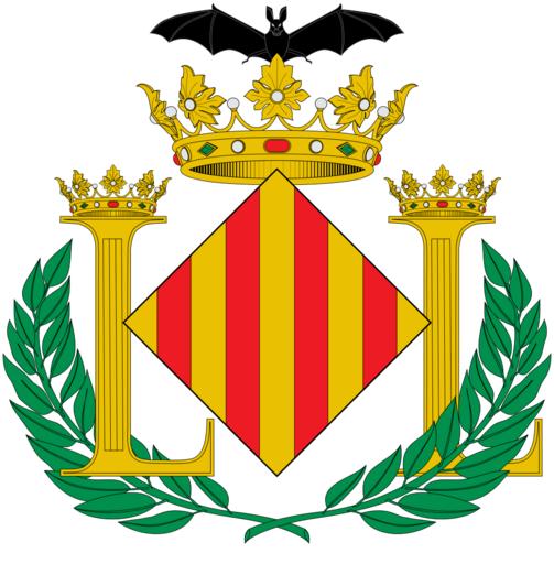 Keywords: Escudo de Valencia 2.svg Escudo de armas de la Ciudad de Valencia Comunidad Valenciana España Escut d'armes de la Ciutat de València Regne de València Blasonamientos Escudo de dama en campo de oro cuatro palos de gules Lleva por soportes dos L doblemente leal de oro coronadas del mismo metal Cimerado con una corona real de oro y crestada con un murciélago de sable http //www fortunecity com/victorian/prado/203/_v htm Escut caironat d'or quatre pals de gules; acostat i per damunt de dues eles d'or coronades Al timbre una corona reial oberta somada d'un rat penat de sable d'ales esteses i tancat amb branques de llorer al remat http //ca wikipedia org/wiki/Escut_de_València Own 2007-10-17 HansenBCN Other versions 64px Other fields + CoA Coats of arms by the Taller de Heráldica y Vexilología in the Spanish Wikipedia Valencia Coats of arms of Valencia city SVG coats of arms of Valencia SVG coats of arms of Spain