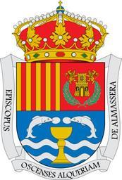 | Keywords: Escut d'Almàssera.svg Almàssera Horta Nord «Semipartit i truncat Al primer d'or els quatre pals de gules Al segon de gules castell d'or acompanyat de dues palmes de sinople perfilades de plata i somat d'una torre d'or acompanyada de dos lleons també d'or Al tercer d'atzur el calze d'or acompanyat de dos peixos d'argent portant cadascú en la seua boca la sagrada forma també d'argent i sostingut d'ones d'argent i atzur Al timbre corona reial tancada» http //www boe es/boe/dias/1979/04/16/pdfs/A08780-08780 pdf Real Decret 774/1979 9-III BOE 16 abril 1979 traducció Almácera Horta Nord «Medio partido y cortado Primero de oro los cuatro palos de gules Segundo de gules castillo de oro acompañado de dos palmas de sinople perfiladas de plata y sumado de una torre de oro acompañada de dos leones del mismo metal Tercero de azur el cáliz de oro acompañado de dos peces de plata trayendo cada uno en su boca una Forma del mismo metal y sostenido de ondas de plata y azur Al timbre corona real cerrada» http //www boe es/boe/dias/1979/04/16/pdfs/A08780-08780 pdf Real Decreto 774/1979 9-III BOE 16 abril 1979 own Mutxamel 2009-02-02 insignia Coa blazon Coats of arms of municipalities of the province of Valencia Almàssera Miracle dels Peixets |
