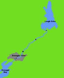 Keywords: Eske.PNG The flow and bridges of River Eske Co Donegal Ireland which flows between Lough Eske and Donegal Bay at Donegal Town Own 2007-12-20 Donegal92 Maps of County Donegal River Eske