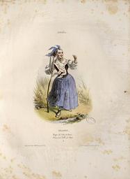 | Keywords: Espagne - Aragon - Muger (sic) del Valle de Broto = Femme de la vallée de Broto - Fonds Ancely - B315556101 A GAVARNI 2 007.jpg Suite de 24 lithographies coloriées avec légende en français et en espagnol numérotées de 1 à 24 couverture lithographiée portant une vignette en noir Montaneses de la frontera de Francia Très rare oeuvre de jeunesse de Gavarni Les pl ne sont pas signées elles portent la mention lith de Lemercier en bas à droite et les deux adresses de Rittner Epreuves en coloris de l'époque sous une couverture de livraison Il existe des tirages avant la lettre non coloriés Pièces jointes extrait du catalogue de la vente de la Bibliothèque de Bonnelles 1933 et couvertures en doublet et en feuilles de l'album Gavarni Ancely René 1876 - 1966 Possesseur fre spa public domain domaine public B315556101_A_GAVARNI_2_007 jpg image/jpeg 1 pl en coul non signée ; 29 cm Lemercier Alfred Léon 18 -18 ; lithographe Lithographe Rittner Henri 1802-1840 ; éditeur Editeur http //numerique bibliotheque toulouse fr/collect/general/index/assoc//ark /74899/B315556101_A_GAVARNI_2_007 dir/B315556101_A_GAVARNI_2_007 jpg Bibliothèque municipale de Toulouse A-GAVARNI 2-4 Creator Paul Gavarni http //catalogues toulouse fr/web2/tramp2 exe/do_keyword_search/log_in setting_key BMT1 servers 1home query p000513 vignette http //numerique bibliotheque toulouse fr/collect/general/index/assoc//ark /74899/B315556101_A_GAVARNI_2_007 dir/B315556101_A_GAVARNI_2_007_thumb jpeg 1829 Espagne - Aragon - Muger sic del Valle de Broto Femme de la vallée de Broto B315556101_A_GAVARNI_2_007 print - colors - color lithograph Women in art Batons in art Peasants from France History of Pyrénées Province of Huesca Caps in art Shoes in art Female clothing National costumes in art Sobrarbe Paul Gavarni Scarves in art Bodices |