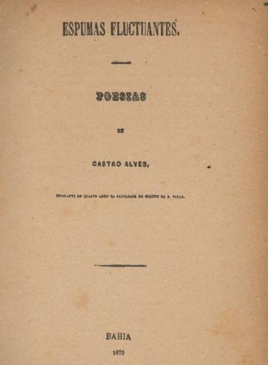 Keywords: Espumas flutuantes Capa.jpg Capa da edição original de Espumas Flutuantes - único livro do poeta brasileiro Castro Alves publicado quando ainda vivo - editado em 1870 <small>scan by André Koehne Sent by André Koehne PD-old Castro Alves