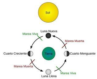 | Keywords: Esquema-mareas.svg en Tides schematic Due to the bathymetry of some areas neap and spring tides reach their maximum force 2 days after the first quarter moon third quarter moon and new moon full moon respectively In the absence of complications due to bathymetry spring tides are exactly at the full and new moons and neap tides are exactly at the one-quarter and three-quarter moon Every six hours the water also lowers or heightens; as such four tides are created Low water spring tide<br/> High water spring tide<br/> Low water neap tide<br/> High water neap tide<br/> Tide schematic svg 2011-05-17 02 35 UTC - Tide schematic svg User KVDP SVG conversion by Surachit derivative work Anonimosanhueza Traducido al espaƱol Tide schematic svg Diagrams of tides |