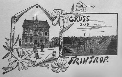 | Keywords: Essen-Frintrop, Verschiebebahnhof.jpg de Ansichtskarte links das Haus der Gaststätte Bremer in Unterfrintrop rechts der Rangier und Sammelbahnhof der von der Köln-Mindener Eisenbahn-Gesellschaft 1885 errichtet wurde alte Ansichtskarte unbek 1911 51 28 34 389 N 6 54 42 5688 E alt 149 8_source exif_heading Köln-Mindener Eisenbahn-Gesellschaft Essen-Frintrop Postcards of Essen PD-old | ||||