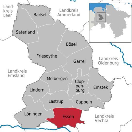 | Keywords: Essen in CLP.svg DeLocMaps Essen Essen Oldenburg Landkreis Cloppenburg District of Cloppenburg Cloppenburg district L'arrondissement de Cloppenburg Arrondissement de Cloppenburg Niedersachsen Basse-Saxe Lower Saxony TUBS/Translation own Adobe Illustrator based on File Lower Saxony location map svg NordNordWest http //www geodaten niedersachsen de/master/C17415881_N17416128_L20_D0_I15258844 html Niedersachsen Viewer File Locator map DH in Lower Saxony svg TUBS 2009-07-09 Hagar66 based on work of TUBS <gallery> file Municipalities in CLP svg </gallery> TUBS GFDL cc-by-3 0 2 5 2 0 1 0 cc-by-sa-3 0 2 5 2 0 1 0 TUBS/Credits Locator maps of municipalities in Landkreis Cloppenburg |