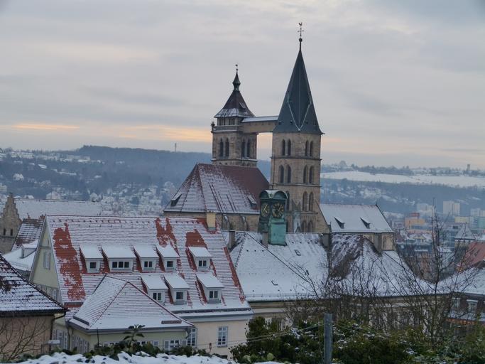 Keywords: esslingen church roofs snow winter cold white wintry snowy