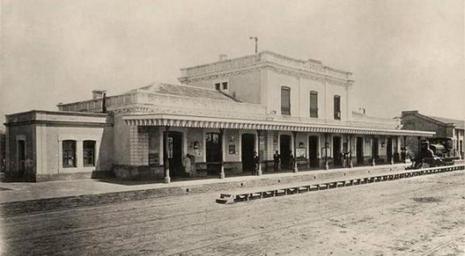 Keywords: Estación Merlo.jpg es Estación merlo en 1880 http //www casmarianoacosta com ar/mariano 20acosta/ayer htm Author 1880 PD-AR-Photo Merlo train station FoP-Argentina
