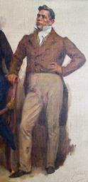 | Keywords: Estudo de figuras humanas para a tela Cortes Constituintes de 1821 (Manuel Borges Carneiro, corpo inteiro) - Veloso Salgado, 1920.png pt Estudo de figuras humanas para a tela Cortes Constituintes de 1821 de Veloso Salgado Pormenor de Manuel Borges Carneiro o homem da direita representado de corpo inteiro de frente para o espectador em posição frontal contraposta apoia a mão direita sobre as costas da cadeira da personagem sentada tem a mão oposta na anca veste fraque castanho dourado calças beges e sapatos rasos pretos en Study of human figures for the painting The Constituent Courts of 1821 by Veloso Salgado Detail of Manuel Borges Carneiro the man to the right depicted at full length facing the viewer with his right hand on the back of José Ferreira de Moura's chair and the other hand on his hip with a golden-brown coat beige trousers and black shoes 1920 http //museu parlamento pt/MatrizWebAR/Objectos/ObjectosConsultar aspx IdReg 515 EntSep 5 MatrizPix - Museu da Assembleia da República Creator Veloso Salgado other versions Estudo de figuras humanas para a tela Cortes Constituintes de 1821 José Ferreira de Moura Agostinho José Freire Manuel Borges Carneiro - Veloso Salgado 1920 png Estudo de figuras humanas para a tela Cortes Constituintes de 1821 Agostinho José Freire - Veloso Salgado 1920 png Custom license marker 2016 10 30 PD-old-70 Manuel Borges Carneiro Studies for As Cortes Constituintes de 1821 Veloso Salgado |