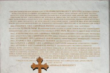 Keywords: Esztergom bazilika nagy Tábla.JPG hu Latin nyelvű emléktábla a bazilikában Own Villy date Plaques in Esztergom Esztergom Cathedral 1948 in Hungary Latin inscriptions in Hungary