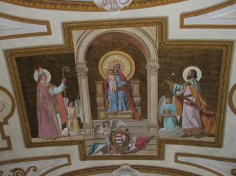 | Keywords: Esztergom.bazilika.teli.kapolna.plafon.JPG hu Az esztergomi főszékesegyház Téli-kápolnájának mennyezeti freskója Own Villy Paintings in the Esztergom Cathedral Paintings of Stephen I of Hungary Royal Scepter of Hungary in art Historical coats of arms of Hungary Paintings of Madonna and Child in Hungary Holy Crown of Hungary in art Derivatives of the coats of arms of the Árpád family Frescos of Christian saints in Hungary Stephen I of Hungary and Patrona Hungariae | ||||