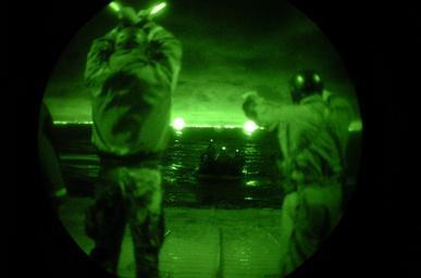 | Keywords: ET1 Percht and QM Hutton DVIDS14855.jpg en PACIFIC OCEAN January 18 2006 - ET1 Chris Percht and QM2 Cole Hutton of US Naval Special Clearance Team One NSCT-1 use hand signals to guide a combat rubber raiding craft F-580 CRRC onto the stern gate of the USS Comstock LSD 45 Working from the USS Comstock NSCT-1 is conducting deep/shallow water mine counter measure operations as they go through their annual training exercise U S Navy photo by Photographer's Mate 2nd Class Sandra M Palumbo 2006-01-18 Petty Officer 2nd Class Sandra Palumbo https //www dvidshub net/image/14855 14855 2006-01-29 13 35 USS COMSTOCK LSD 45 USNORTHCOM AT SEA PD-USGov USS Comstock LSD-45 Images from DoD uploaded by Fæ United States Naval Special Clearance Team One |