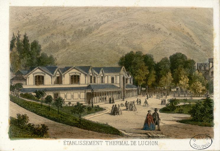 | Keywords: Etablissement thermal de Luchon - Fonds Ancely - B315556101 A MERCEREAU 4 018.jpg Fait partie d'un album dépliant de 25 planches dessinées et lithographiées par Mercereau aquarellées en couleurs et gommées Sur le contreplat étiquette du libraire Auguste Bassy à Pau Ancely René 1876 - 1966 Possesseur fre public domain domaine public B315556101_A_MERCEREAU_4_018 jpg image/jpeg 1 f de pl lithogr ; 10 5 cm oblong Frick frères Imprimeur Sinnet F Éditeur Bassy Auguste Libraire http //numerique bibliotheque toulouse fr/collect/general/index/assoc//ark /74899/B315556101_A_MERCEREAU_4_018 dir/B315556101_A_MERCEREAU_4_018 jpg Bibliothèque municipale de Toulouse A-MERCEREAU 4-17 Creator Charles Mercereau http //catalogues toulouse fr/web2/tramp2 exe/do_keyword_search/log_in setting_key BMT1 servers 1home query p001566 vignette http //numerique bibliotheque toulouse fr/collect/general/index/assoc//ark /74899/B315556101_A_MERCEREAU_4_018 dir/B315556101_A_MERCEREAU_4_018_thumb jpeg century 19 Etablissement thermal de Luchon B315556101_A_MERCEREAU_4_018 lithography - print - colors - color lithograph Thermes Chambert Women in art Crowds in art Buildings in art Mountains in art Bagnères-de-Luchon in art Men in art Charles Mercereau Trees in art Colonnades in France Scanned with i2s Digibook Suprascan 6002 RGB |