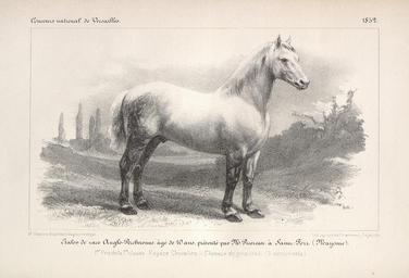 | Keywords: bibliothèque historique du ministère de l'agricutlure bibliothèquehistoriqueduministèredelagricutlure bibagri mrsh races chevalines raceschevalines concours agricoles concoursagricoles cheval race anglo-percheronne raceanglopercheronne Planche dessinée d'après un daguerréotype, issue de "Concours régionaux d'animaux reproducteurs, d'instruments, machines, ustensiles ou appareils à l'usage de l'industrie agricole, et des divers produits de l'agriculture ou des différentes industries agricoles, tenus à Saint-Lô, Toulouse, Nancy, Amiens, Angers, Limoges et Nevers,et concours national de Versailles ", publié par ordre du Ministre de l'agriculture et du commerce, Paris, Imprimerie nationale, 1852, p. 447. Ouvrage appartenant à la Bibliothèque historique du ministère de l'Agriculture, déposée à la MRSH Caen. Fichier : UNICAEN_MRSH_Cheval_BB_850_447 Planche dessinée d'après un daguerréotype, issue de "Concours régionaux d'animaux reproducteurs, d'instruments, machines, ustensiles ou appareils à l'usage de l'industrie agricole, et des divers produits de l'agriculture ou des différentes industries agricoles, tenus à Saint-Lô, Toulouse, Nancy, Amiens, Angers, Limoges et Nevers,et concours national de Versailles ", publié par ordre du Ministre de l'agriculture et du commerce, Paris, Imprimerie nationale, 1852, p. 447. Ouvrage appartenant à la Bibliothèque historique du ministère de l'Agriculture, déposée à la MRSH Caen. Fichier : UNICAEN_MRSH_Cheval_BB_850_447 |
