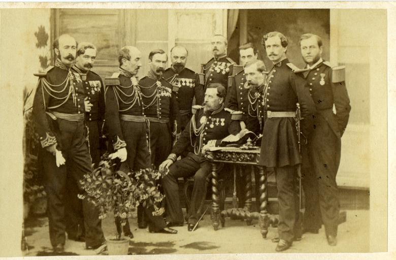 | Keywords: État-major du corps d'occupation en Italie (1863).jpg author État-major du corps d'occupation en Italie 1863 cm Institution Les officiers du corps d'armée d'occupation de Rome - 1863 L'armée française déploie un corps d'occupation à Rome pour protéger les possessions du Pape Ces troupes sont présentes de 1849 à 1870 sous diverses appellations corps d'armée d'occupation division d'occupation En 1863 le corps d'occupation est réduit à une seule division de trois brigade et un régiment de cavalerie 4e régiment de hussards C'est le général de Montebello qui commande les troupes Il est photographié ici à Rome entouré de ses officers d'état major en grande tenue L'état major du Corps d'armée Commandant la division Général de Montebello Chef d'état-major Colonel Pissis Membres de l'état-major Chef d'escadron de la Haye Chef d'escadron Sumpt Capitaine Dumas Aides de camp du Gl de Montebello Commandant Nugues Capitaine de Villermont Officier d'ordonnance du Gl de Montebello Lieutenant Beugnot Chef du service de santé Médecin Leroy Les autres officiers Commandant le Grégeois Lieutenant de Vaisseau de Sénale Officier de marine Lieutenant de Vaisseau Montebello http //www military-photos com/cexit htm www military-photos com 1863 Other versions PD-Art DEFAULTSORT corps_d'occupation ImageNote 1 83 54 125 147 980 643 2 Philippe Ernest de Lahaye Né en 1819 il fait l'école d'état major en 1843 Chef d'escadron le 27/5/1859 il est aide de camp du général Uhrich durant la campagne d'Italie Il meurt comme lieutenant colonel le 28/12/1873 ImageNoteEnd 1 ImageNote 2 273 94 97 131 980 643 2 Charles Victor Pissis - Chef d'état major du corps d'armée d'occupation de Rome Charles Pissis est né en 1806 Il est issu du corps des ingénieurs géographes Officier supérieur depuis 1844 il est à l'état major de l'armée en Algérie à la proclamation du Second Empire Colonel en mars 1855 il exerce plusieurs fonctions de chef d'état major de divisions d'infanterie notamment pendant la campagne d'Italie avant d'être nommé chef de l'état major du Corps d'armée d'occupation à Rome Nommé général de brigade le 13/8/1863 il commande la subdivision de la Loire inférieure puis celle de Toulon Au cadre de réserve en 1868 il ne participe pas à la guerre de 70 Il meurt en 1872 ImageNoteEnd 2 ImageNote 3 359 109 66 118 980 643 2 Commandant d'état major Louis Joseph Sumpt est né le 13 novembre 1816 à Nancy Après avoir fait Saint Cyr en 1837 promotion de Constantine il entre à l'école d'état major en 1840 Il fait la guerre de Crimée à l'état major du général Herbillon Nommé chef d'escadron le 27/3/1856 il sera présent à l'état major du corps d'occupation de Rome de 1859 à 1865 y prenant finalement les fonctions de chef d'état major En 1870 il est chef d'état major d'une division d'infanterie du 7e corps d'armée A la bataille de Froeschwiller il a les deux mains emportées par un obus et est fait prisonnier Il est nommé général de brigade en septembre 1871 Il finit sa carrière comme commandant de la légion d'honneur commandant l'hôtel des Invalides jusqu'à sa mort en 1891 ImageNoteEnd 3 ImageNote 4 401 108 93 76 980 643 2 Pierre Henri Esprit Floridor Dumas Né le 1er juin 1829 à Montauban Dumas a fait l'école de Saint Cyr 1851 et l'école d'état major en 1854 Il est capitaine depuis aout 1857 et restera dans ce grade dix sept ans jusqu'en 1874 date de sa nomination comme chef de bataillon à l'état major de la Place de Paris Fatigué par une carrière qui s'eternise il passe dans l'armée territoriale et est nommé lieutenant colonel en juin 1881 au 71e régiment d'infanterie territoriale Il meurt en 1901 officier de la Légion d'Honneur ImageNoteEnd 4 ImageNote 5 590 141 87 98 980 643 2 Saint Cyr Louis Nugues Fils d'un lieutenant général Pair de France le baron Nugues est né le 3 octobre 1819 à Romans Sorti de l'école d'état major en 1844 il est chef d'escadron depuis mars 1861 Il est longtemps attaché au général de Montebello dont il est aide de camp pendant une dizaine d'années Lors de la visite du Sultan Turc en 1867 le général du Barail raconte que celui ci demanda qu'un officier français soit attaché à son fils pour l'éduquer On prit la chose très au sérieux et l'on désigna l'officier désigné à ces hautes fonctions C'était l'aide de camp du général Montebello le commandant Saint Cyr Nugues On ne pouvait d'ailleurs mieux choisir le commandant était sorti avec le numéro 1 de l'école d'état major c'était un officier hors ligne très instruit très appliqué et d'une haute moralité Il fit ses préparatifs de départ et commença à mûrir tout un plan d'éducation impériale En quittant la France le Sultan ne l'emmena point mais lui promit de le faire venir dès qu'il aurait reglé certaines questions d'intérieur Puis le temps passa et un beau jour on apprit que le Grand Seigneur trouvait son fils encore trop jeune pour le confier à un officier Le commandant Nugues resta le bec dans l'eau On le dédommagea en le nommant lieutenant colonel Nommé colonel le 3/8/1869 Nugues fait la guerre de 1870 à l'état major du Maréchal Bazaine Après le désastre il participe à la réorganisation de l'armée française comme chef du 2e bureau de l'état major puis général de brigade le 30/12/1875 il contribue à la création de l'école supérieure de guerre Il décède en 1900 commandeur de la légion d'honneur ImageNoteEnd 5 ImageNote 6 505 71 72 88 980 643 2 Alfred Henri Hubert Hennequin de Villermont Marquis de Villermont il est né le 7/5/1826 élève de Polytechnique il est sorti de l'école d'état major en 1851 Il fait la campagne de Crimée comme aide de cam du général de Failly et est grièvement blessé le 31/8/1855 par un éclat d'obut à la tête Affecté en Algérie il est aide de camp du général Yusuf avant d'être nommé à ce poste auprès du général de Montebello En 1870 il prend part à la 