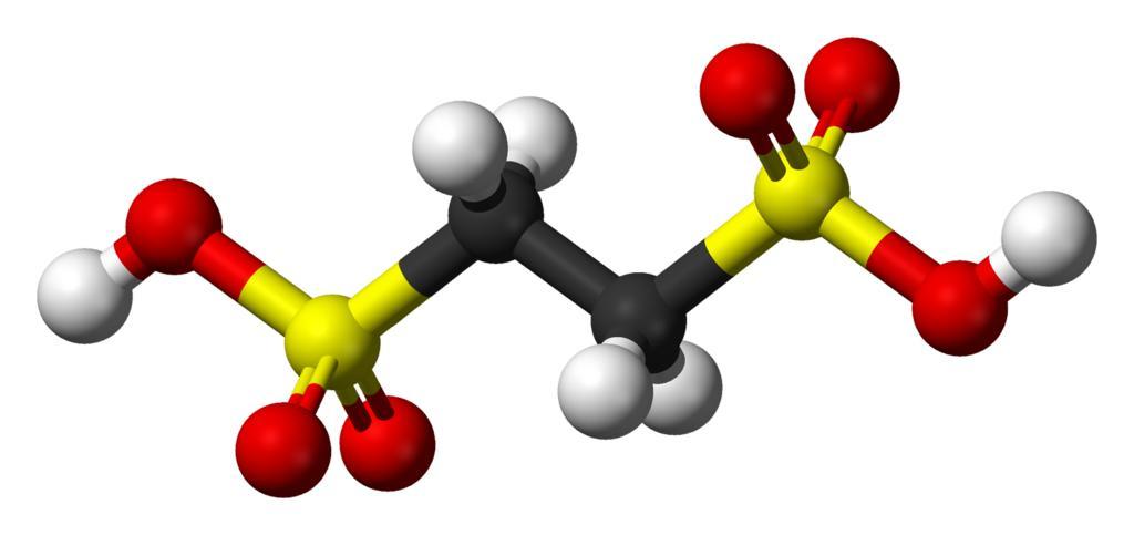 Keywords: Ethanedisulfonic-acid-3D-balls.png Ball-and-stick model of the ethanedisulfonic acid molecule Derived from File Ethanesulfonic-acid-3D-balls png 2010-07-19 Jynto and Ben Mills Sulfonic acids Ball-and-stick models Images by Jynto