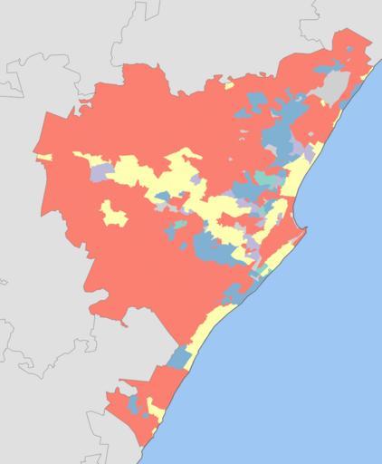 | Keywords: Ethekwini 2001 dominant population group map.svg  fb8072 Black African 8dd3c7 Coloured 80b1d3 Indian or Asian ffffb3 White bebada No group dominant d0d0d0 No population Statistics South Africa's Census 2001 is the source of the basic population data The map results from my own processing of the data Htonl 2010-02-15 Htonl The following license applies to the population data on which the map is based http //www statssa gov za/copyrightdisclaimer asp the user acknowledges Stats SA as the source of the basic data wherever they process apply utilise publish or distribute the data and also that they specify that the relevant application and analysis where applicable result from their own processing of the data The following tag applies to the map itself Demographic maps of South Africa Maps of Durban |