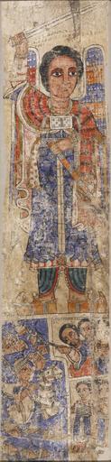 | Keywords: Ethiopian - Archangel Michael and the Crossing of the Red Sea - Walters 36131.jpg Together with its companion on the opposite pillar this work originally flanked the entrance to the mäqdäs or sanctuary of an Ethiopian church where it served as a guardian figure Here the archangel Michael acts a protector of the Jewish people The Old Testament scene beneath him is divided into three parts On the left the Red Sea consumes Pharaoh and his army while on the right Moses closes the waters with his staff Below Aaron's sister Miriam and another woman sing songs of praise This object is one of only a handful of such monumental wall paintings that can be seen outside of Ethiopia middle Other date century 19 Modern tempera canvas cm 205 55 accession number 36 13 1 36885 Paul Stewart London date and mode of acquisition unknown Sam Fogg London date and mode of acquisition unknown Walters Art Museum 2001 by purchase Museum purchase with funds provided by an anonymous donor 2001 Angels of Light Ethiopian Art from the Walters Art Museum Birmingham Museum of Art Birmingham; Smith College Museum of Art Northampton; Museum of Biblical Art New York 2006-2007 place of origin Ethiopia Walters Art Museum license 2D Art of Ethiopia in the Walters Art Museum Church paintings in Ethiopia Paintings in the Walters Art Museum Media contributed by the Walters Art Museum needs category review Tempera on canvas |