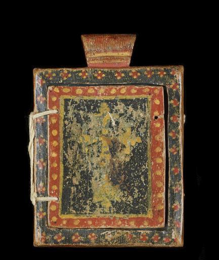 | Keywords: Ethiopian - Front of a Double-Sided Diptych with Mary and Her Son, and Saint George - Walters 365 - Closed A.jpg  This small icon was worn around the neck to ward off evil; it could be hung with either side facing out This is a small replica of the famous icon known as the Kwerata Reesu Christ with the Crown of Thorns believed to protect the whole kingdom of Ethiopia Allegiance to the emperor was sworn on the Kwerata Reesu and it accompanied him on military expeditions late Other date century 18 Gondarine tempera wood H with one panel open 3 7/16 x W 4 x D 5/8 in 8 7 x 10 1 x 1 55 cm ; H with two panels open 3 7/16 x W 5 9/16 x D 5/8 in 8 7 x 14 1 x 1 55 cm ; Closed cm 8 7 6 2 1 55 ; Center panel cm 8 89 6 35 ; Folding panels cm 5 87 4 76 accession number 36 5 35663 Knopfelmacher Collection New York date and mode of acquisition unknown Knopfelmacher 1 William Wright Gallery New York date and mode of acquisition unknown Walters Art Museum 1996 by purchase Museum purchase with funds provided by the W Alton Jones Foundation Acquisition Fund 1996 Ethiopian Art at The Walters The Walters Art Gallery Baltimore 1996 Realms of Faith Medieval and Byzantine Art from the Walters Art Museum Frist Center for the Visual Arts Nashville 2001-2002 Realms of Faith Medieval and Byzantine Art from the Walters Art Museum Frist Center for the Visual Arts Nashville 2002-2005 Angels of Light Ethiopian Art from the Walters Art Museum Birmingham Museum of Art Birmingham; Smith College Museum of Art Northampton; Museum of Biblical Art New York 2006-2007 place of origin Gondar Ethiopia Walters Art Museum license 3D Art of Ethiopia in the Walters Art Museum Church paintings in Ethiopia Paintings in the Walters Art Museum Media contributed by the Walters Art Museum needs category review |