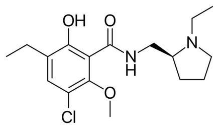 | Keywords: Eticlopride.svg validSVG Skeletal formula of eticlopride Created using http //www acdlabs com/download/chemsk html ACD/ChemSketch 10 0 http //www inkscape org Inkscape and http //www vim org vim Own Fvasconcellos 2008-07-28 Benzamides Dopamine antagonists Phenol ethers Azolidines Anisoles Monochlorobenzenes Ethyl compounds N-substituted primary amides |