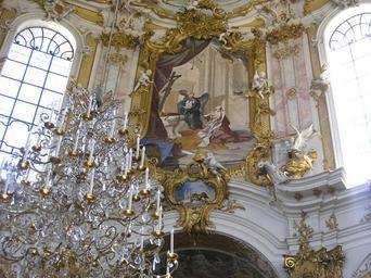 Keywords: Ettal11.jpeg The monastery church of Ettal Klosterkirche Ettal Photo taken by Effi Schweizer Date 19 July 2006 2006-07-21 own assumed Lily Interior of Klosterkirche Ettal Church chandeliers in Germany