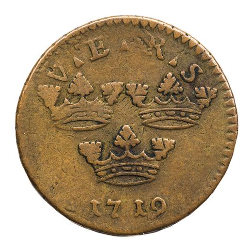 | Keywords: Ettöring, ompräglat mynt från 1719 - Skoklosters slott - 109381.tif LSH artwork Karl G Hartmann myntmästare Zachris Arensburg sv Ulrika Eleonora d y 1718-1720 Åtsida tre kronor med V E R S 1719 Frånsida Dalarnas vapen krönt 1 ÖR KM original caption Ettöring ompräglat mynt från 1719 <br/> Nyckelord Pengar Ekonomisk historia Föremålsbild Öre 1710-tal 1719 copper size mm 1 25 SKO HEDLINGER JOHAN K place of origin original filename sm_dig15947 23616 inventory number SKO 2363 109381 CC-BY-SA Miguel Herranz <gallery caption Different images of same object > File Ompräglat mynt från 1719 - Skoklosters slott - 109380 tif </gallery> Ören Coins of Sweden Miguel Herranz Media contributed by LSH unmatched creator Media contributed by LSH 2016-05 Coins in Skoklosters slott |