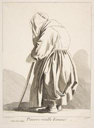 | Keywords: Études prises dans le bas peuple ou les Cris de Paris - Pauvre vieille Femme.jpg A Poor Old Woman A poor elderly woman leaning on a walking stick full-length turned to the left and away from the viewer with her face hidden under a hood or a headdress 1742 Etching with some engraving image 8 11/16 x 6 9/16 in 22 1 x 16 7 cm sheet 9 1/8 x 6 5/8 in 23 1 x 16 8 cm Institution Metropolitan Museum of Art 3353871 object history exhibition history other versions 398283 Below image on left Bouchardon inv ; centered Pauvre vieille Femme ; on left C S Bottom left A Paris Chés Joullain credit line Harris Brisbane Dick Fund 1953 accession number 53 600 588 44 PD-100 Études prises dans le bas peuple ou les Cris de Paris Etchings of Paris Etchings in the Metropolitan Museum of Art Images of Paris from the Metropolitan Museum of Art Old women in art |