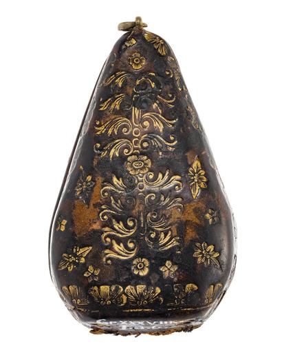 | Keywords: Etui till pitschaft, 1700-tal - Hallwylska museet - 110479.tif  LSH artwork sv Prisma av bergskristall tresidig med ovala sidor samt fasetterade ändar och kanter På en av sidorna graverat ett vapen avtryck se Planschverket på fyrsidig sköld med hjälmprydnad och lövverk Skaft platt triangulärt genombrutet och ciselerat nedtill en halvcirkelformig båge på vars utsida vid vardera ändan en uppåt doserande pärlstav däröver ett bladliknande utsprång; prismat rörligt i bågen på en tapp i vardera ändan Från bågen utgå två mot varandra snett uppresta S-formade sidostycken vartdera av två bågar den nedre större i form av ett akantusblad på ytterkanten med en pärlstav den övre mindre med inrullade ändar Mellan sidostyckena nedtill på en lång slät tapp en skjutbar hylsa med fjäder på vardera av hylsans sidor en pålagd blombukett ombunden med ett band knutet i en rosett med två öglor nedtill en slät klyka vilken griper över prismats uppåtvända kant; upptill en fyrbladigt blomkalk över denna en refflad knopp överst mellan två frånvända bågar en konturerad ögla med fasetterad knopp Etui original klätt med brunt kalvskinn varpå rika blom- och bladorneringar i guldtryck samt fodrat med röd sammet; vid främre ändan en hake av mässing med ögla original caption Etui till pitschaft 1700-tal <br/> Nyckelord Skinn Etui Pitschaft Föremålsbild mid other date century 18 silver - quartz size cm 4 2 etui size cm 2 8 etui g 19 etui g 28 9 size cm 5 5 size cm 6 7 etui size cm 2 8 prisma size cm 2 3 HWY place of origin original filename hm_dig24517 16526 inventory number HWY XXXVIII I a 06 110479 CC-BY-SA Helena Bonnevier <gallery caption Different images of same object > File Pitschaft av silver och bergskristall med graverad vapensköld 1700-tal - Hallwylska museet - 110334 tif </gallery> Leather Signets Accessories Helena Bonnevier Media contributed by LSH dim-with multiple size templates Media contributed by LSH unmatched keyword Media contributed by LSH 2016-12 |