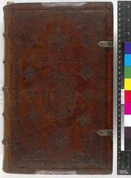 | Keywords: Eucharistia - Upper cover (c66g9).jpg Style Lettered cover eg intitals titles Religious miscellaneous; Caption Upper cover; Colour Brown; Edge Unspecified exhibition history Decorative Technique Tooled in alloy frequently gold and silver zwisch Tooled in blind Tooled in gold; Cover Material Calf Shaped boards 2 pairs of clasps May be tooled in blind or oxidised gold object history Text 1602; Krakov; Unspecified object type Cc-zero place of creation Binding Poland place of discovery Unspecified British Library image http //www bl uk/catalogues/bookbindings/LargeImage aspx RecordId 020-000010346 ImageId ImageId 44778 Copyright BL Eucharistia Uploaded with GWToolset Eucharistia - Upper cover c66g9 http //www webarchive org uk/bldatasets/bindings/11268_4 jpg Bookbinding 17th-century bookbinding British Library Bookbindings |