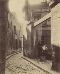 | Keywords: Eugène Atget, Metalworker's Shop, passage de la Réunion - Getty Museum.jpg Artwork en In the courtyard of his shop a metalworker stands with one hand on his hip; a stiffly posed woman presumably his wife appears in a window above him; and a man stands in the distance at the end of the alley The locations of these three people all of whom direct their attention at the photographer form a dynamic triangle The passage de la Réunion provided a spatially exciting subject for Eugène Atget who would have observed the alley's various planes created by straight and curving walls and their relationship to the patterned road For this photographer concerned with places and aspects of Parisian life that were disappearing this alley essentially unaltered from a much earlier period was an ideal subject for his photographic collection Atget sold images such as this one to artists who then used the photographic documents as source material for their own work 1911 Albumen silver print Image 21 6 x 17 8 cm 8 1/2 x 7 in Institution Getty Museum object history exhibition history other versions 70093 Inscription Title and negative number 310 inscribed verso print in pencil Secondary Inscription Inscribed verso print in the hand of André Jammes Anc coll x v par A Brieux and Chaudronnerie rue du Maure Expos Paris Berlin no 388 credit line accession number 90 XM 64 133 PD-old-auto 1927 Coppersmiths Artisans from France 1911 Metal gates in France Gates in Paris 1911 Passage de la Réunion Paris Reunion passage de Historical images of streets in Paris Reunion passage de Historical images of Paris 3e arrondissement Reunion passage de Passage du Maure Paris 1911 1911 photographs Photographs of Paris by Eugène Atget Photographs in the Getty Museum |