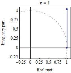 | Keywords: EulerFormulaAsLimit.gif en This is a demonstration of Euler's formula exp i pi/3 cos pi/3 + i sin pi/3 It uses the formula 1+z/N N --> Exp z as N increases The Nth power is displayed as a repeated multiplication in the complex plane As N increases you can see that the final result the last point approaches the point on the unit circle of the complex plane dashed line at angle pi/3 radians from +1 Variant of File ExpIPi gif 2012-01-22 own Sbyrnes321 <pre> Source code written in Mathematica 6 0 by Steve Byrnes 2012 I release this code into the public domain frameticks - 25 0 25 5 75 1 1 25 ; plot1 Table ShowListPlot Table Re 1 + I Pi/ 3 n m Im 1 + I Pi/ 3 n m m 0 n Joined -> True PlotMarkers -> Automatic PlotRange -> - 3 1 1 - 3 1 1 AxesOrigin -> 0 0 Frame -> True FrameLabel -> Real part Imaginary part FrameTicks -> frameticks None frameticks None Frame -> True PlotLabel -> n <> ToStringn LabelStyle -> Medium AspectRatio -> Automatic ParametricPlot Sint Cost t 0 2 Pi PlotStyle -> DirectiveGray Dashed n 1 2 3 4 5 10 20 50 100 ; SetDirectory C \\Users\\Steve\\Desktop ; Export test gif plot1 DisplayDurations -> 2 AnimationRepititions -> Infinity ImageSize -> 200; </pre> cc-zero Uploaded with UploadWizard Images with Mathematica source code Animated GIF |