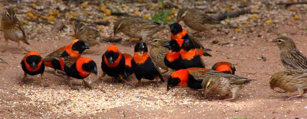 Keywords: Euplectes orix00.jpg en Euplectes orix - females feeding with males in breeding plumage Gauteng South Africa Own Rotational 2008-11-30 Public domain Euplectes orix Ploceidae of South Africa